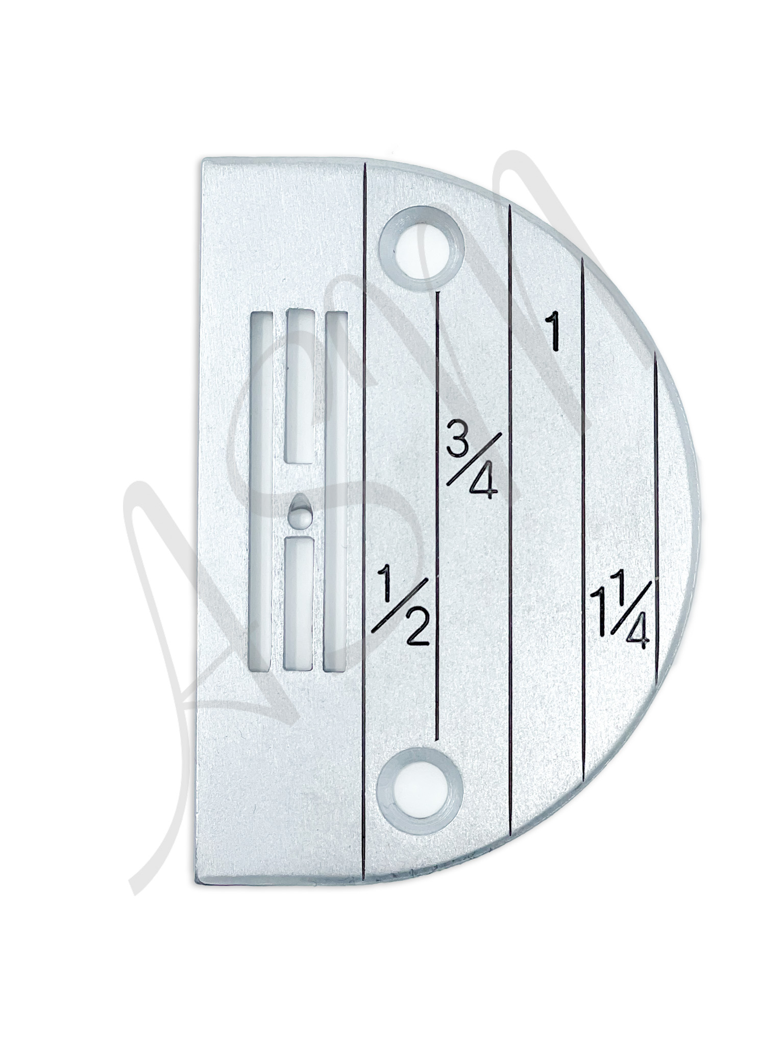 This regular needle plate with line gauge marking common sewing distances from needle hole.