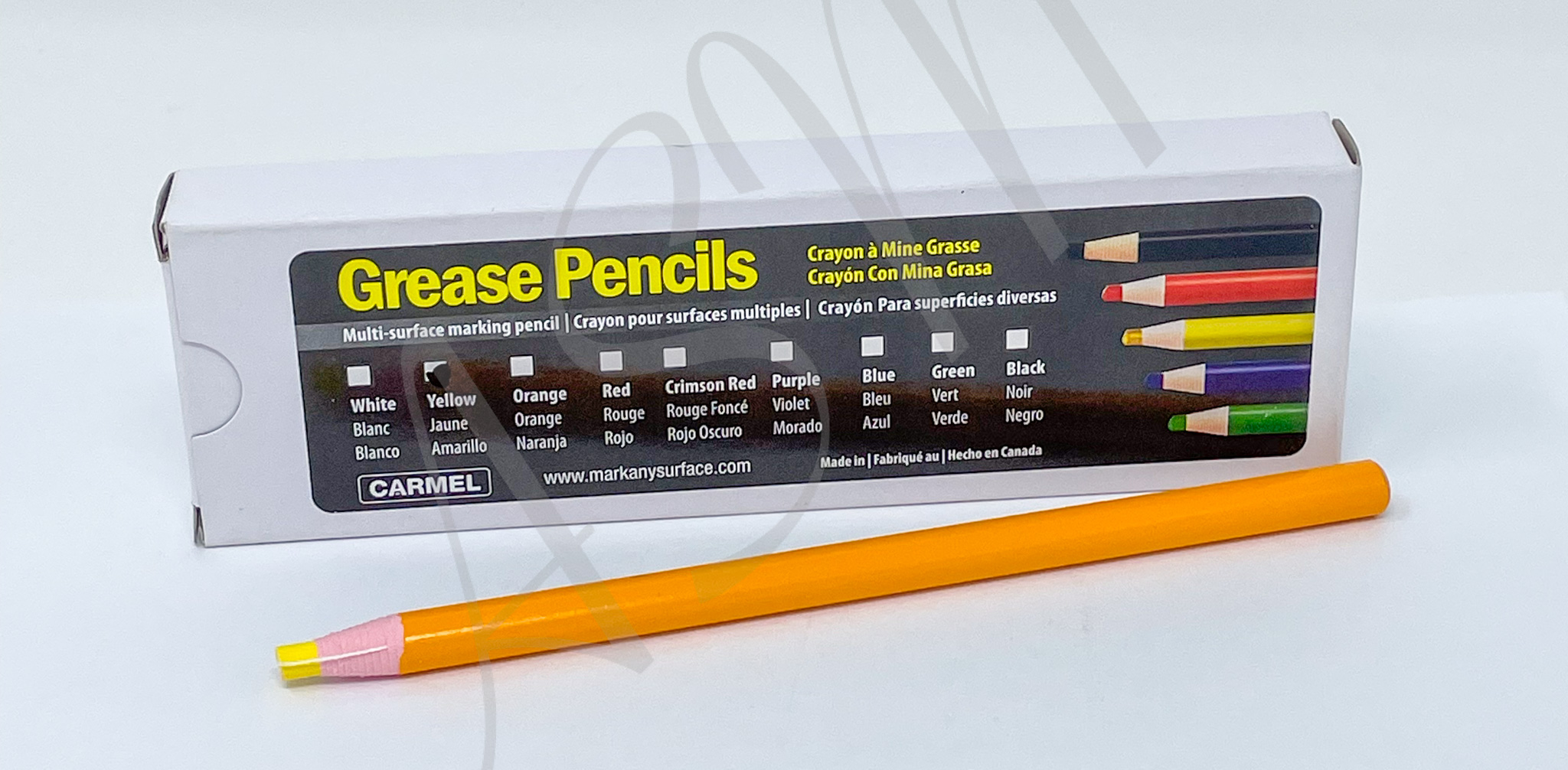 Carmel Grease Pencils are useful for multi-surface marking to create beautiful artwork. The colors are crisp and can be used lightly for shading or apply more pressure for a deeper intensity. Tear the string surrounding the tip to break the paper and peel it to reveal the pencil core.