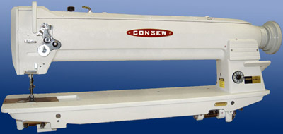 Consew 255RBL 25″ long arm walking foot sewing machine with 25″ of working space under the arm. Compared to the standard 10″ of working space on the regular Consew 255RB waling foot sewing machine, the extra space will allow long, large or difficult to sew materials to pass under the arm of the machine. Large capacity “U” style bobbin holds more thread allowing you to sew longer seams and more work before needing to be changed.