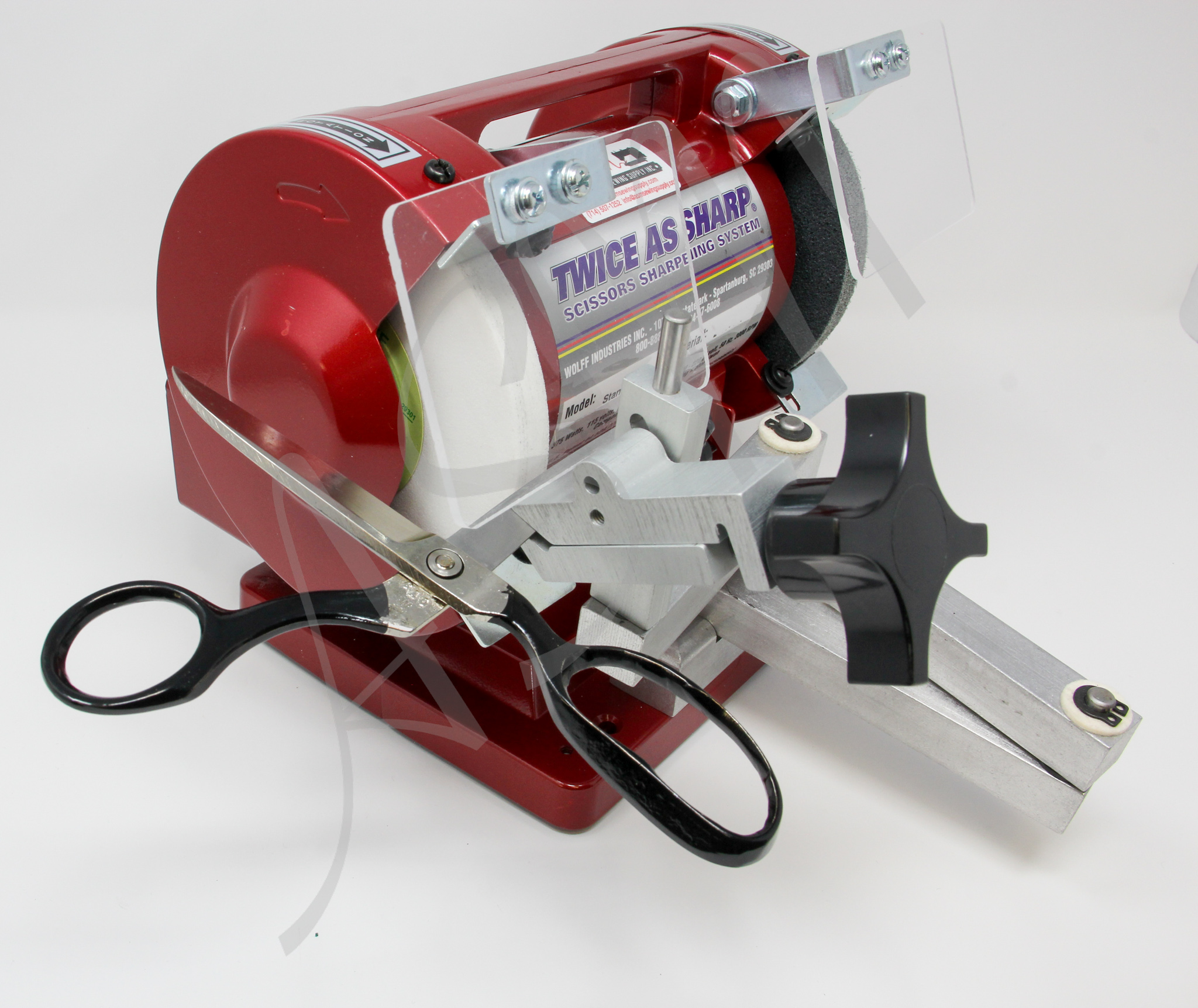 Standard scissor sharpener is designed to make sharpening your home and sewing scissors and shears fast, easy and precise. Comes equipped with a 100 grit sharpening wheel (A-1/27000) so you can sharpen your shear quickly. A buffing wheel (A-1/25000) allows you to clean up your edge. The arm and clamp assembly can be set to match all possible angles on any pair of shears up to 14″ in length. An in-depth manual that lists many o the best angles for different styles of shears, and a comprehensive training video that will walk you through the steps of sharpening numerous shears. The Wolff Industries Twice-as-Sharp® A-1 allows you to confidently sharpen any shear to the exact angle best suited to your application.